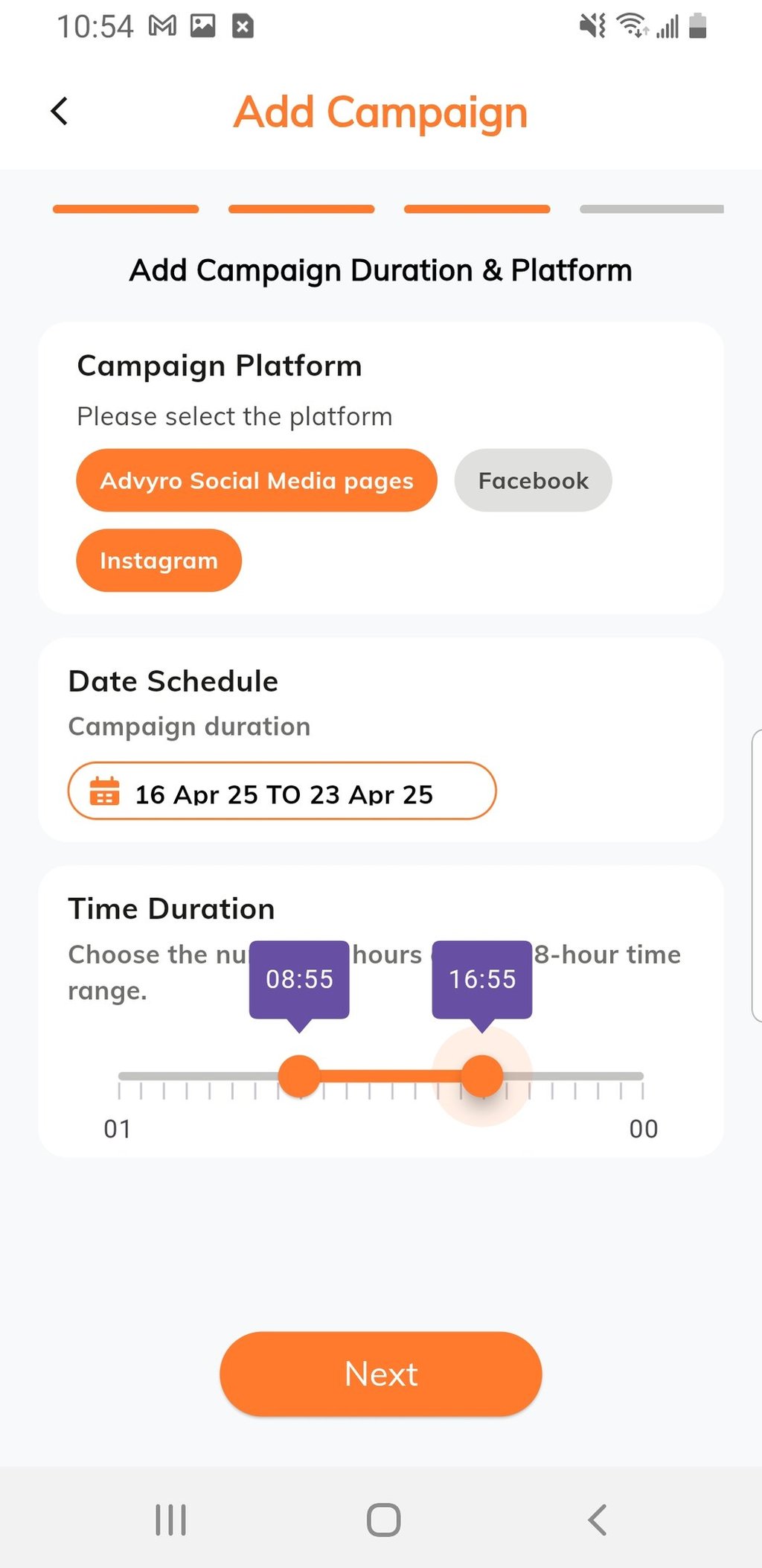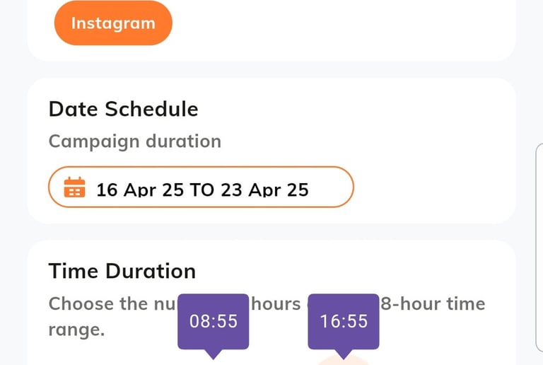 Choose your preferred ad dates, times, duration, and target platforms.